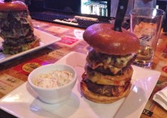 – Starts with 3 patties and gets as large as you want! The current record as of June 2014 is 9 patties. This burger isn’t for the feint of heart, ladies and gentlemen, with each patty weighing in at half a pound. Hope you’re excited to hear that you can make a burger as big as you want. Come in to either location and try the burger challenge today. If you break the time record at any patty level, you get the meal for free. If you eat more patties than anyone else has, you have created a new level and you get it free. (From restaurant’s website)