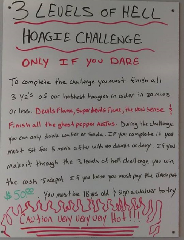 Meathead’s Deli’s 3 Levels Of Hell Hoagie Challenge Rules
