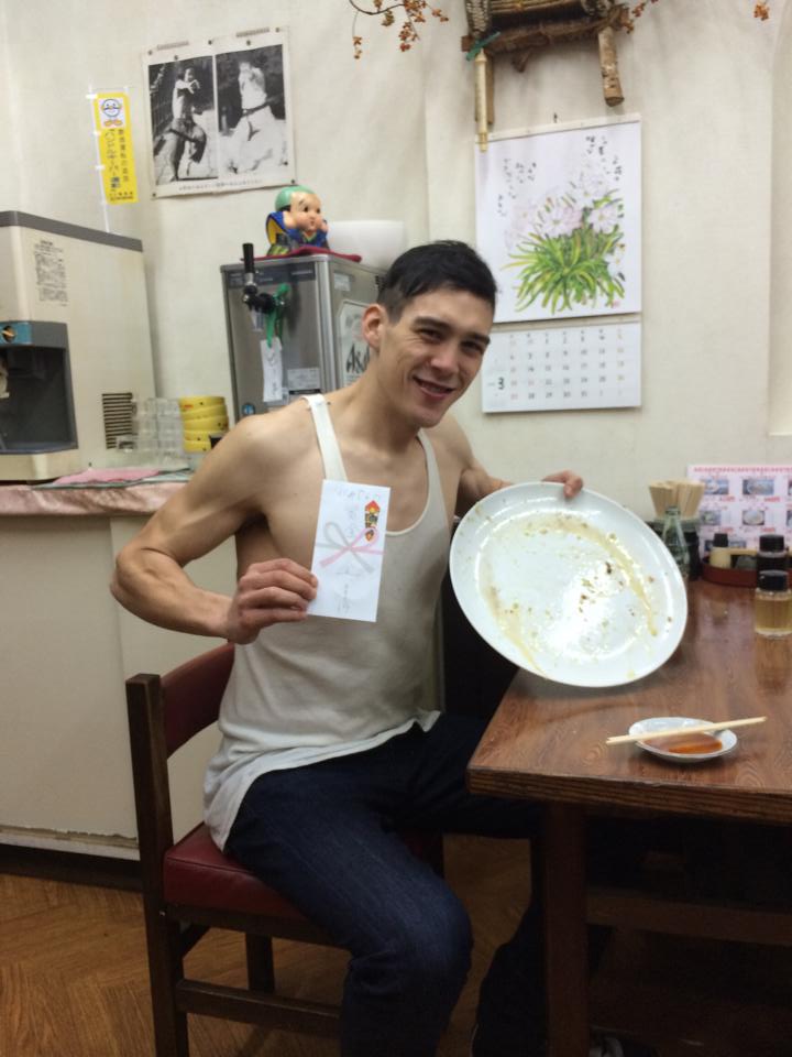 Just completed a gyoza (dumpling) challenge at the Daikichi in Hitachi-Taga. I had to eat 25 jumbo gyozas within 45 min and finished them off in 25 min! For completing the challenge, I won ¥5000 ($50) and a spot on their wall of fame!